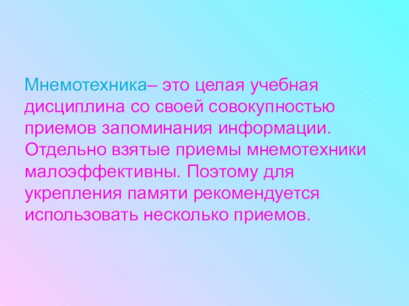 Слайд 8Мнемотехника– это целая учебная дисциплина со своей совокупностью приемов запоминания информации.