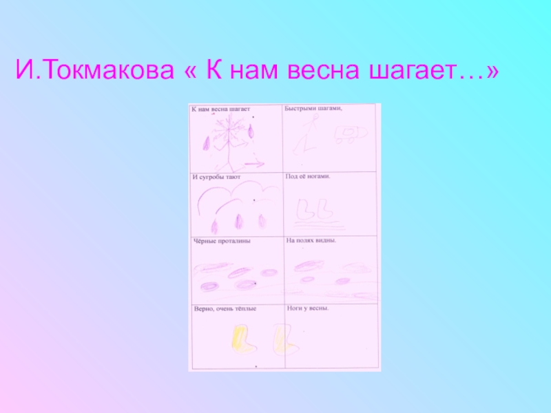 Слайд 24И.Токмакова « К нам весна шагает…»