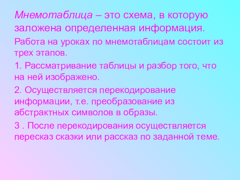 3 . После перекодирования осуществляется пересказ сказки или рассказ по заданной теме.