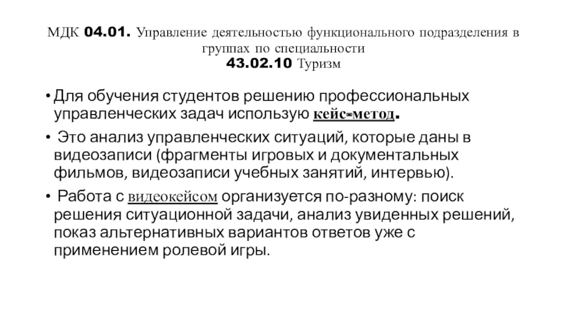 Для обучения студентов решению профессиональных управленческих задач использую кейс-метод.