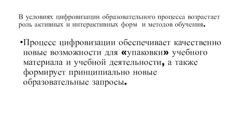 Процесс цифровизации обеспечивает качественно новые возможности для «упаковки» учебного материала и учебной деятельности, а также формирует принципиально новые образовательные запросы.