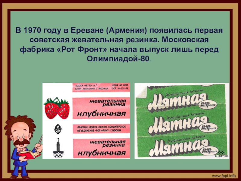 Слайд 13В 1970 году в Ереване (Армения) появилась первая советская жевательная резинка.
