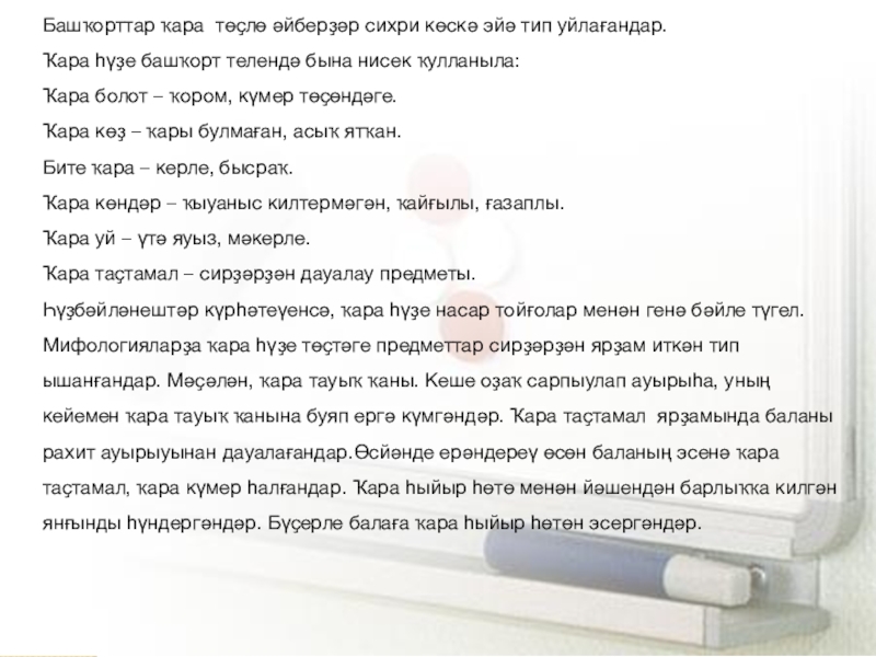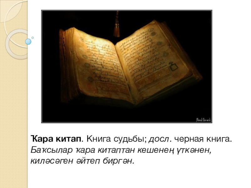 Слайд 17Ҡара китап. Книга судьбы; досл. черная книга. Баҡсылар ҡара китаптан кешенең