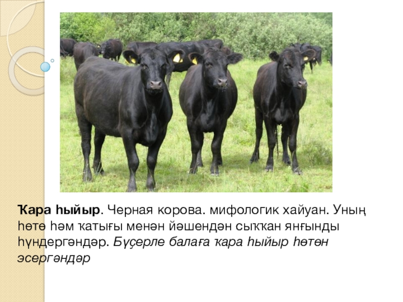 Слайд 21Ҡара һыйыр. Черная корова. мифологик хайуан. Уның һөтө һәм ҡатығы менән