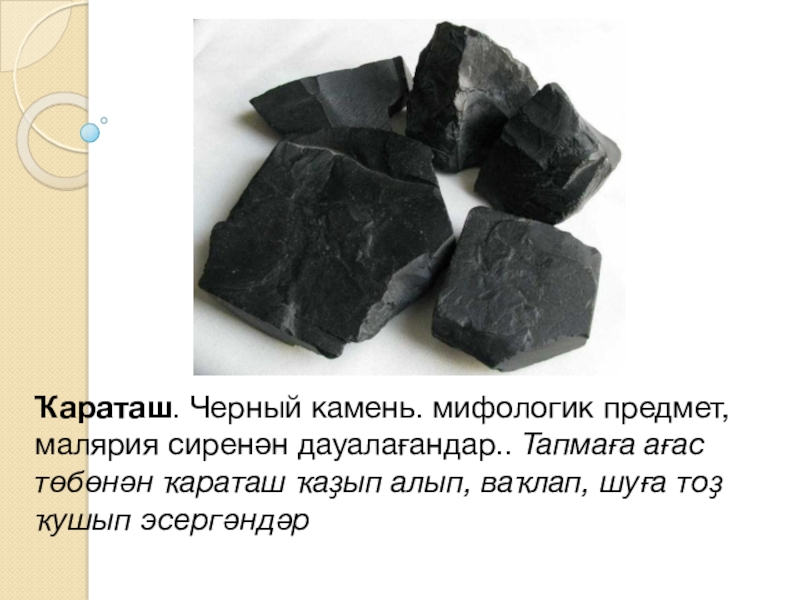 Слайд 22Ҡараташ. Черный камень. мифологик предмет, малярия сиренән дауалағандар.. Тапмаға ағас төбөнән