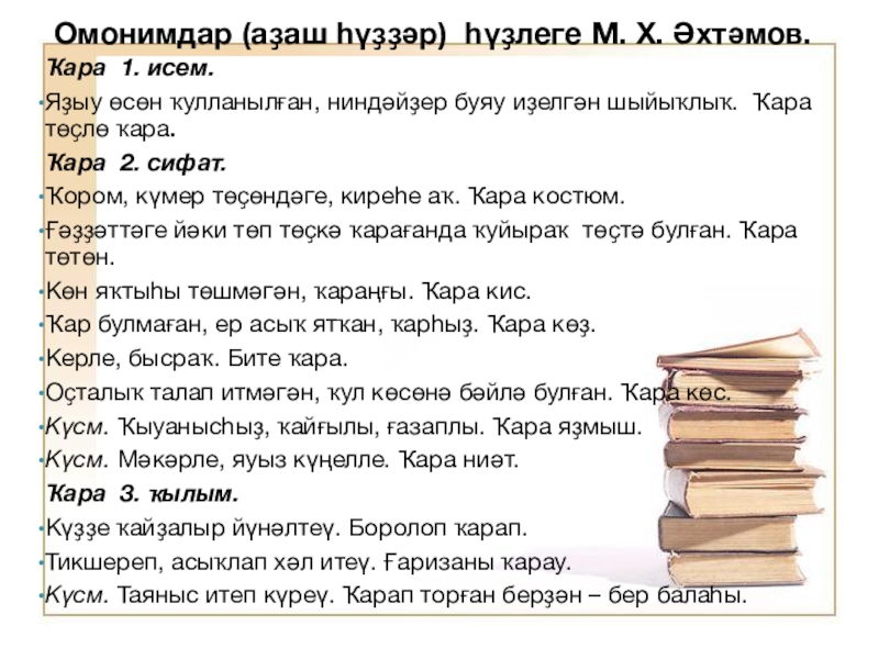 Слайд 5Омонимдар (аҙаш һүҙҙәр) һүҙлеге М. Х. Әхтәмов.