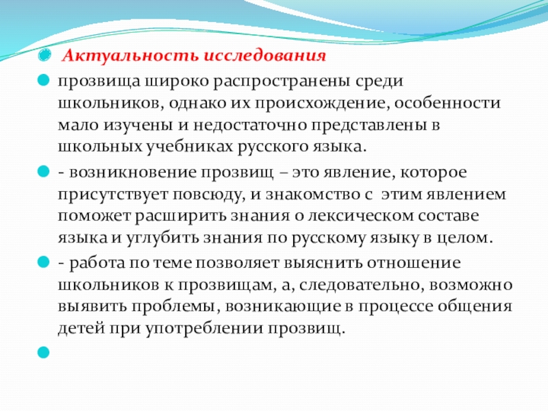 - возникновение прозвищ – это явление, которое присутствует повсюду, и знакомство с этим явлением поможет расширить знания о лексическом составе языка и углубить знания по русскому языку в целом.