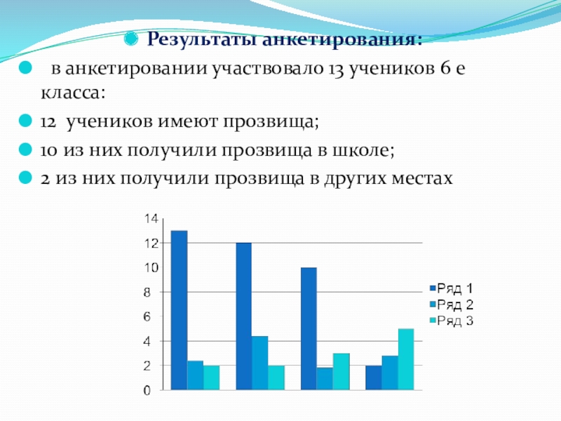 в анкетировании участвовало 13 учеников 6 е класса: