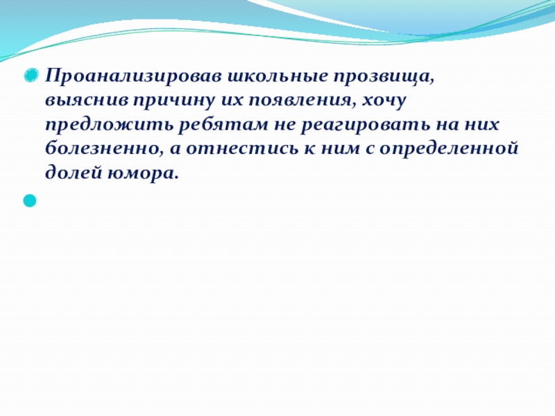 Слайд 15Проанализировав школьные прозвища, выяснив причину их появления, хочу предложить ребятам не