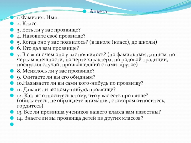 13. Все ли прозвища учеников вашего класса вам известны?