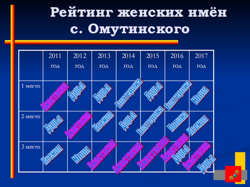 Слайд 6 Рейтинг женских имён с. Омутинского
