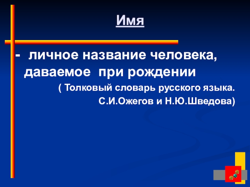 Имя- личное название человека, даваемое при рождении( Толковый словарь русского языка. С.И.Ожегов и Н.Ю.Шведова)