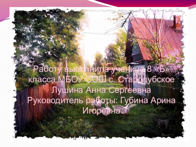 8 «Б» класса МБОУ СОШ с. Стародубское Лушина Анна Сергеевна
