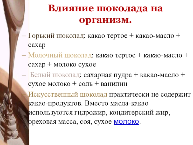 во -вторых: если употреблять ненастоящий шоколад, а его подделки.