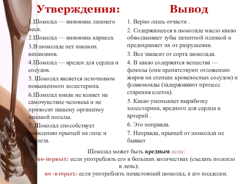 2. Содержащееся в шоколаде масло какао обволакивает зубы защитной пленкой и предохраняет их от разрушения.