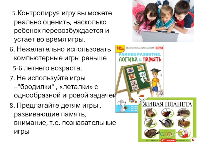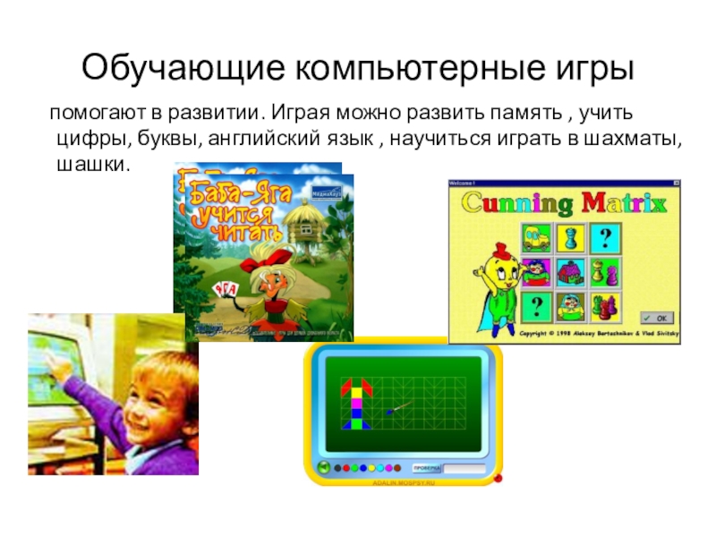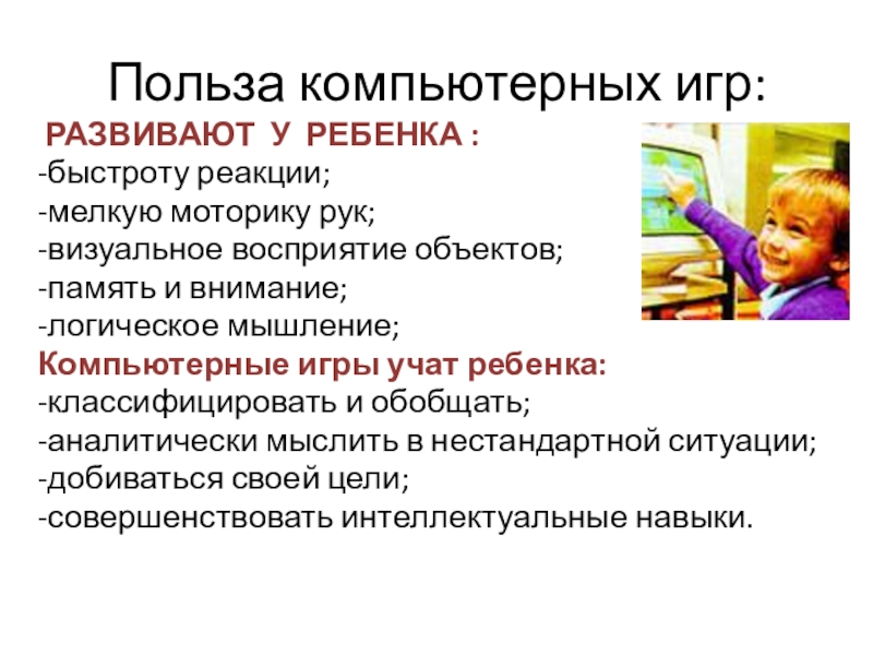 Слайд 23 При разумном подходе, детские компьютерные игры полезны: одни игры
