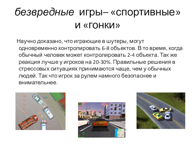 Слайд 12безвредные игры– «спортивные» и «гонки»