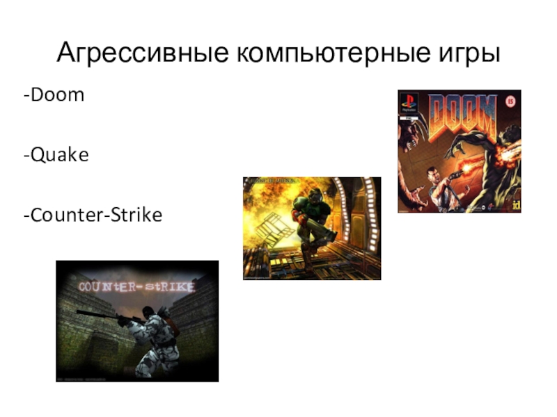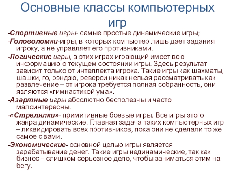 -«Стрелялки»- примитивные боевые игры. Все игры этого жанра динамические. Главная задача таких компьютерных игр – ликвидировать всех противников, пока они не сделали то же самое с вами.