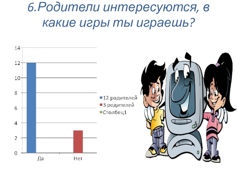Слайд 206.Родители интересуются, в какие игры ты играешь?