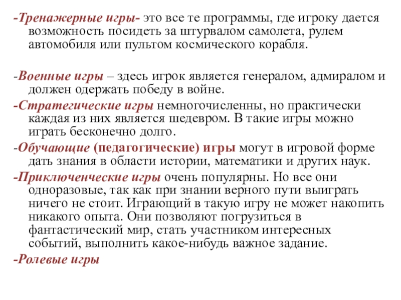 Слайд 9-Тренажерные игры- это все те программы, где игроку дается возможность посидеть