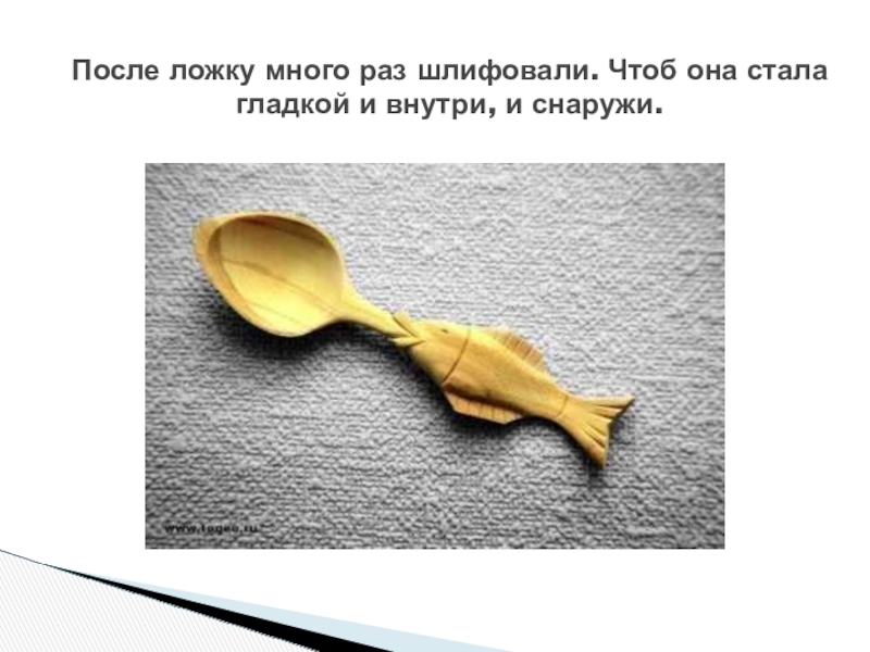 Слайд 20После ложку много раз шлифовали. Чтоб она стала гладкой и внутри,