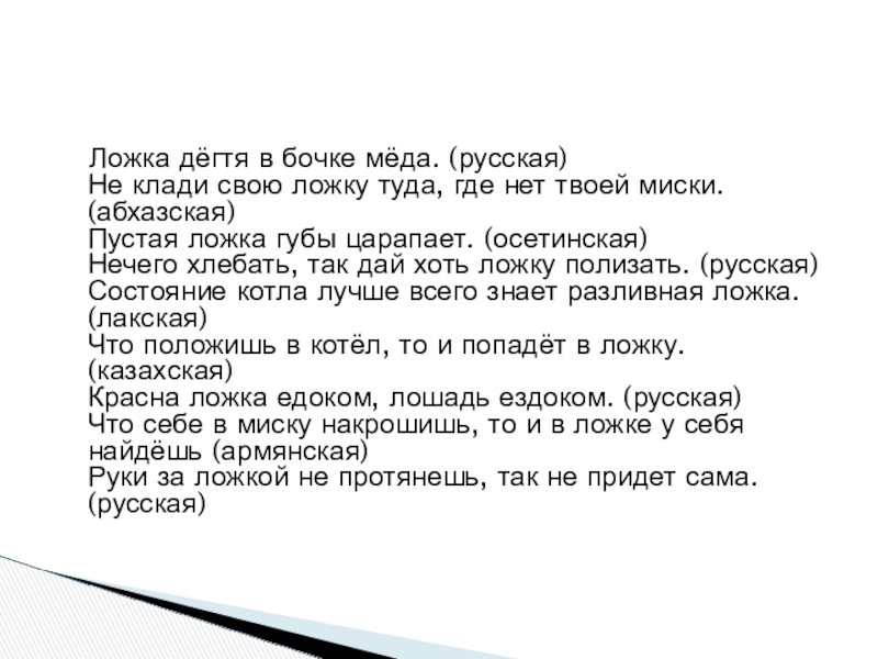Слайд 42 Ложка дёгтя в бочке мёда. (русская)