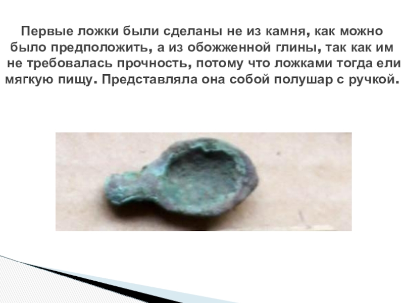 Слайд 3Первые ложки были сделаны не из камня, как можно было предположить,