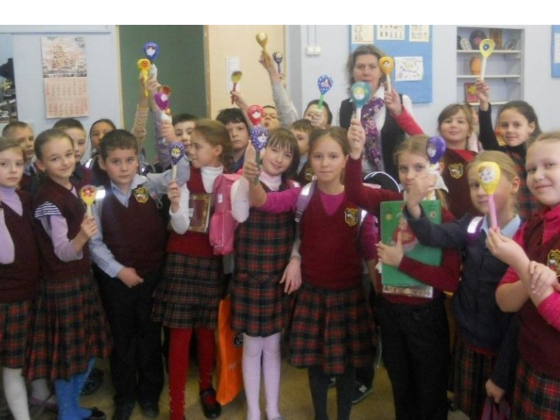 Слайд 40Тут мы с моим весёлым и любимым классом расписываем деревянные ложки.