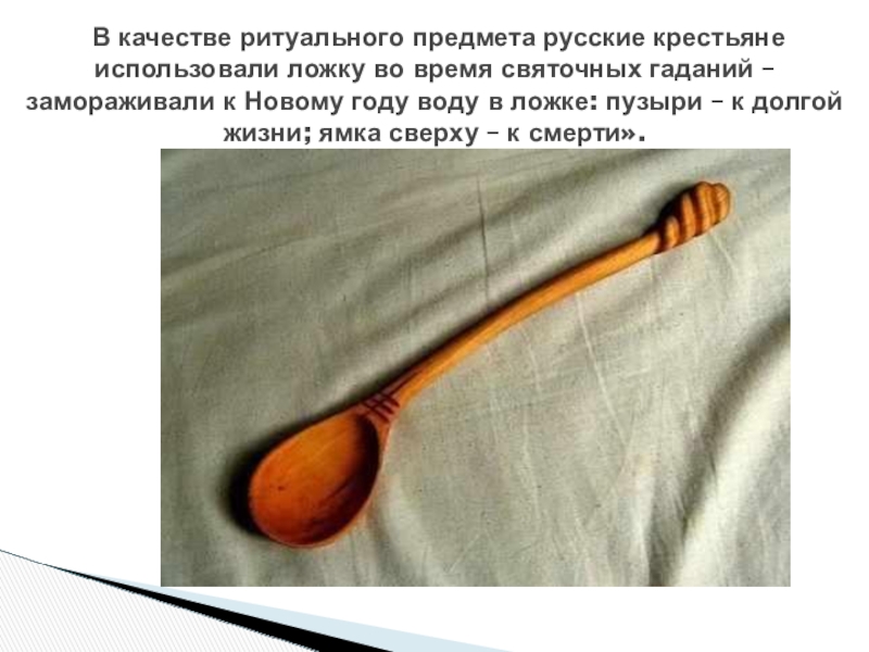 Слайд 8 В качестве ритуального предмета русские крестьяне использовали ложку во время