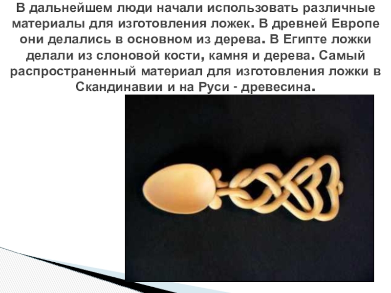 Слайд 15В дальнейшем люди начали использовать различные материалы для изготовления ложек. В