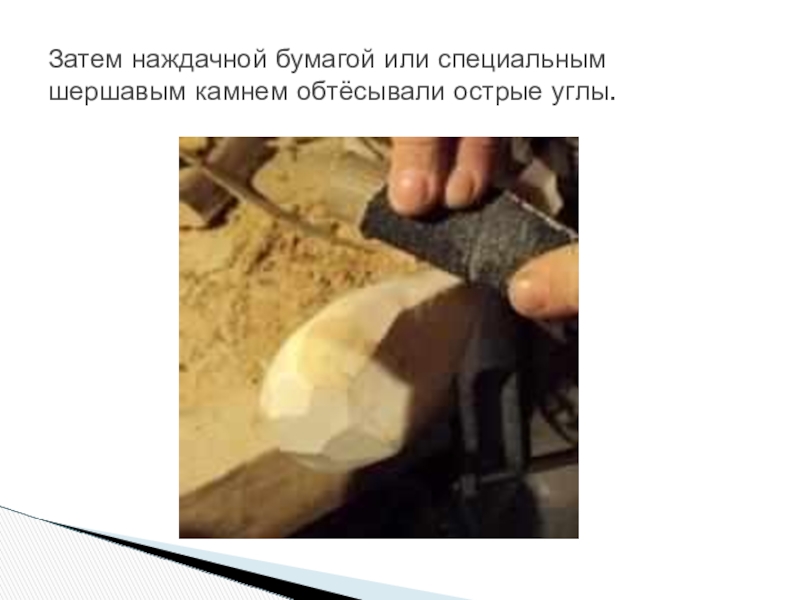 Слайд 18Затем наждачной бумагой или специальным шершавым камнем обтёсывали острые углы.