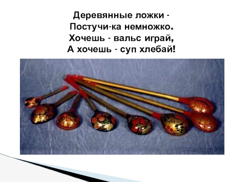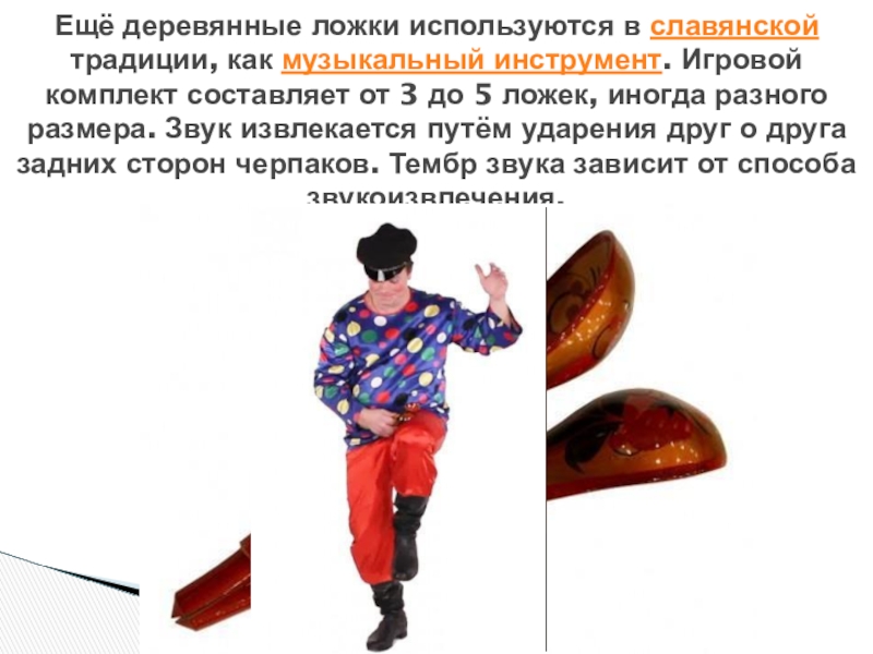 Слайд 24Ещё деревянные ложки используются в славянской традиции, как музыкальный инструмент. Игровой