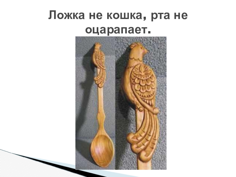 Слайд 21Ложка не кошка, рта не оцарапает.