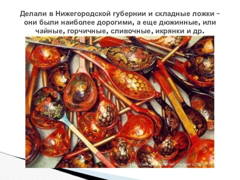 Слайд 14Делали в Нижегородской губернии и складные ложки – они были наиболее
