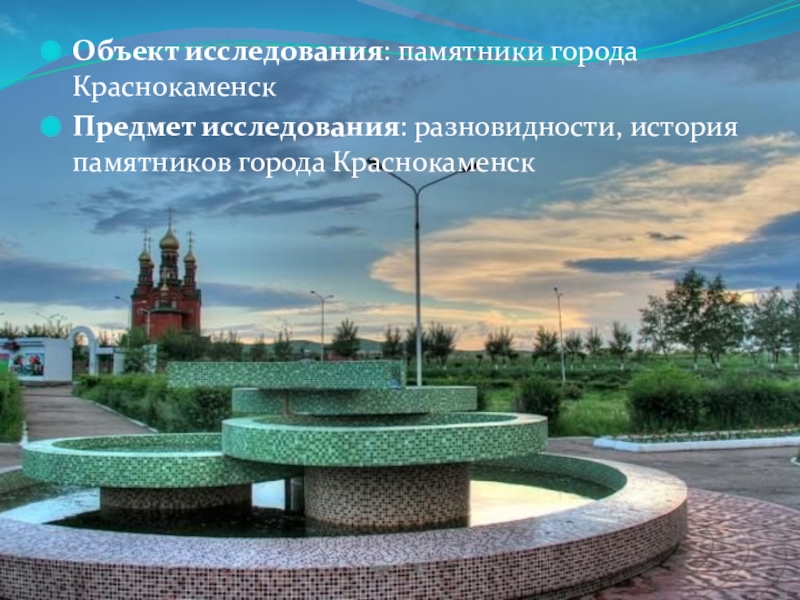 Слайд 3Объект исследования: памятники города Краснокаменск