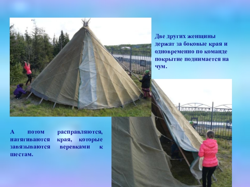 А потом расправляются, натягиваются края, которые завязываются веревками к шестам.