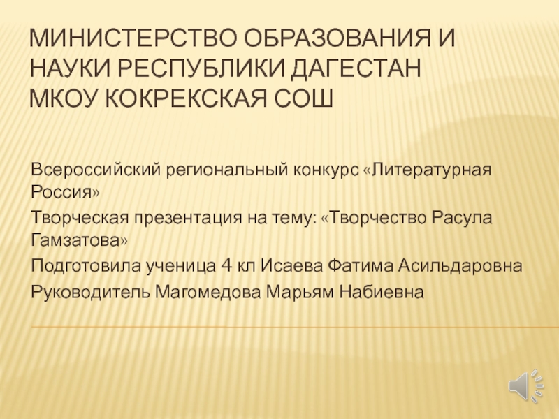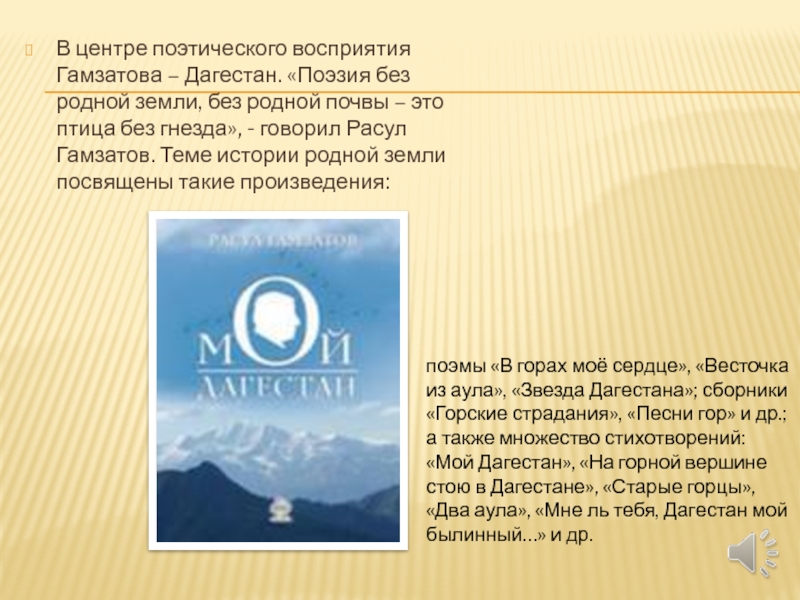 Творческая презентация на тему: «Творчество Расула Гамзатова»