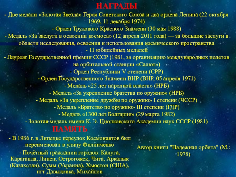 Автор книги "Надежная орбита" (М.: 1978)