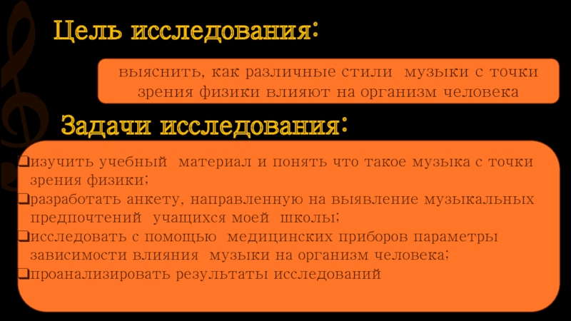 исследовать с помощью медицинских приборов параметры зависимости влияния музыки на организм человека;