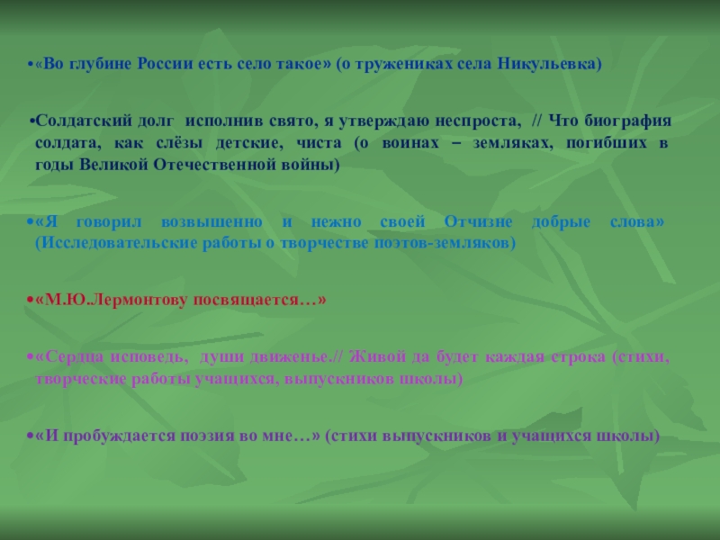 «Я говорил возвышенно и нежно своей Отчизне добрые слова» (Исследовательские работы о творчестве поэтов-земляков)
