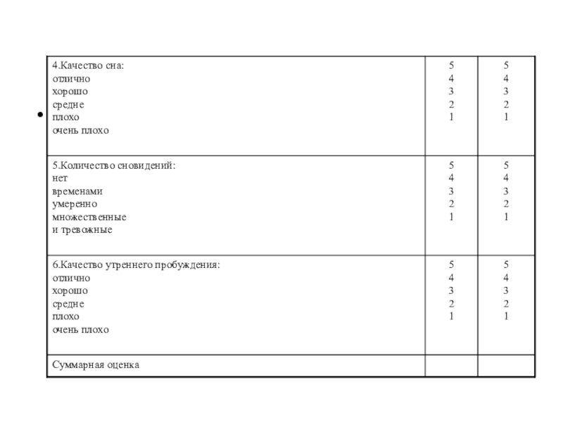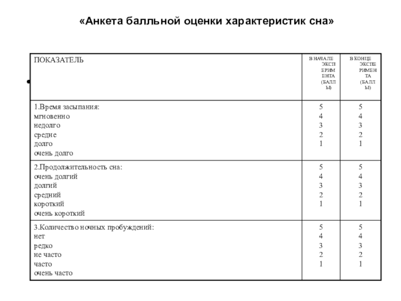 Слайд 12 «Анкета балльной оценки характеристик сна»