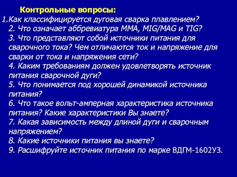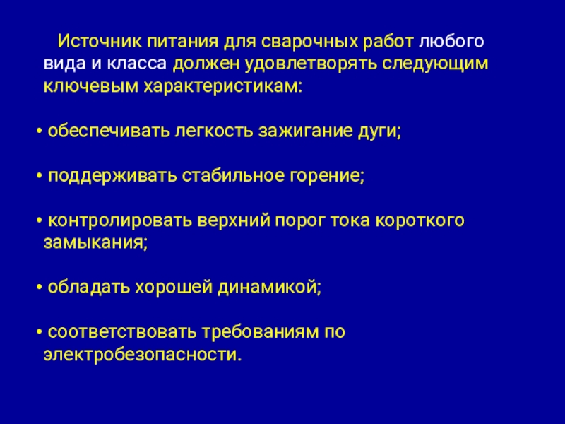 4. Каким требованиям должен удовлетворять источник питания сварочной дуги?