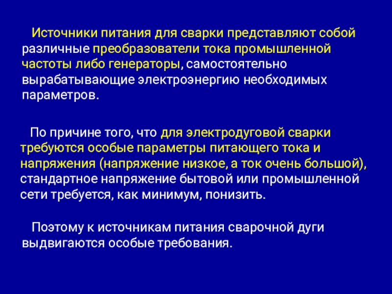 Поэтому к источникам питания сварочной дуги выдвигаются особые требования.