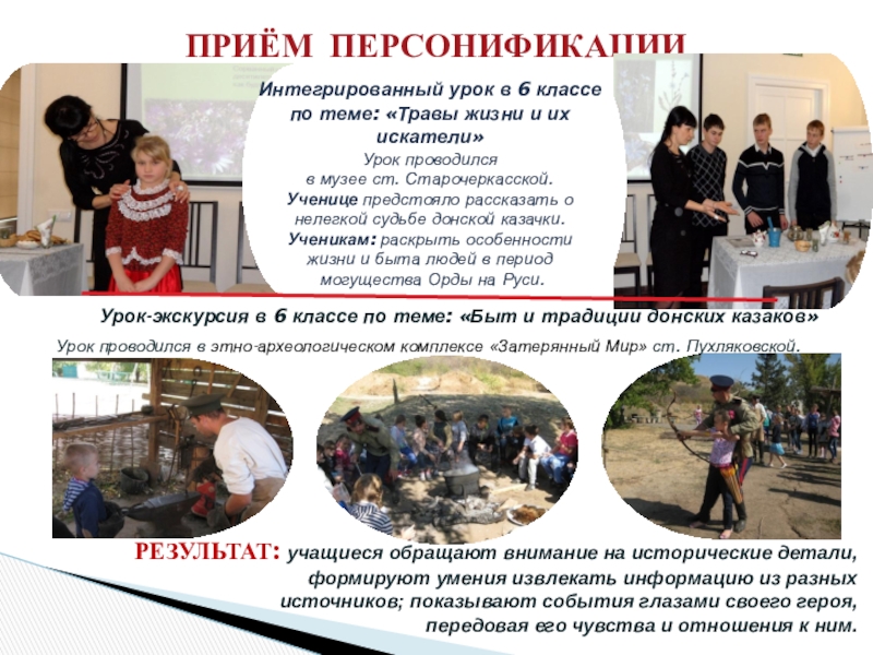 Урок проводился в этно-археологическом комплексе «Затерянный Мир» ст. Пухляковской.
