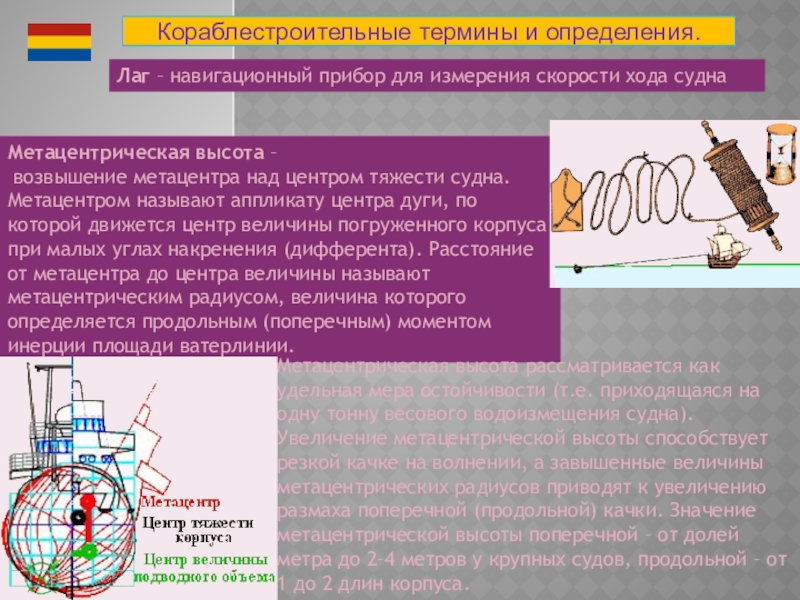 Слайд 9Лаг – навигационный прибор для измерения скорости хода судна