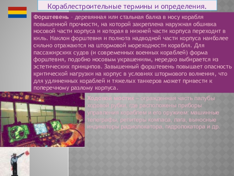 Слайд 12Ходовой мостик – огражденная часть палубы ходовой рубки, где расположены приборы управления