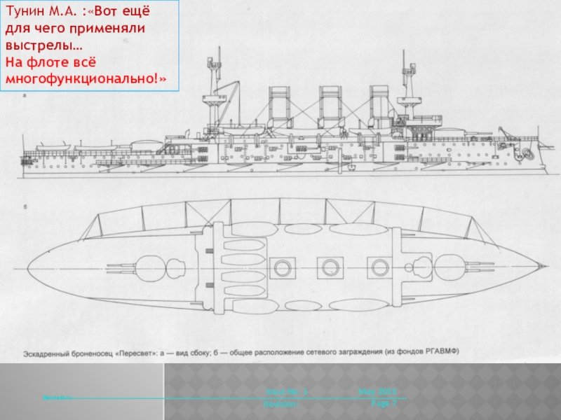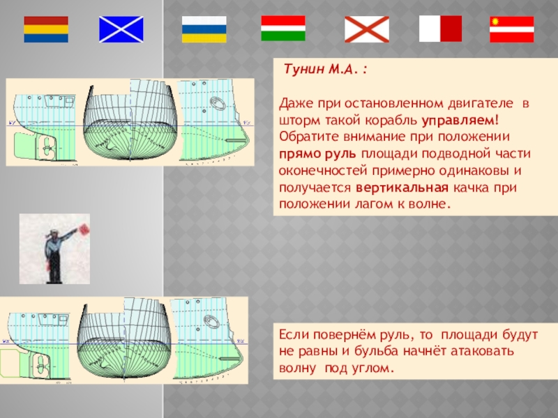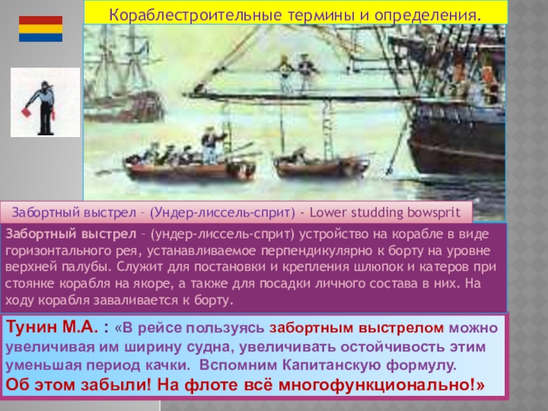 Слайд 6Тунин М.А. : «В рейсе пользуясь забортным выстрелом можно увеличивая им