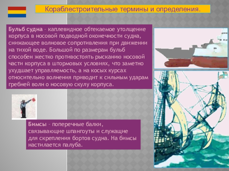 Слайд 3Бимсы – поперечные балки, связывающие шпангоуты и служащие для скрепления бортов судна.