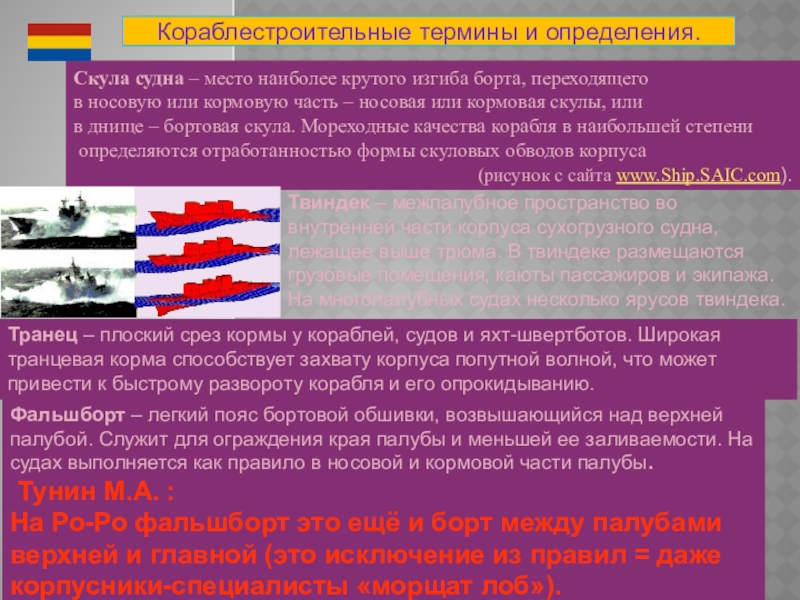 Слайд 11Скула судна – место наиболее крутого изгиба борта, переходящего