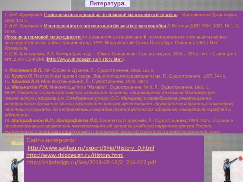 Слайд 671. В.Н. Храмушин. Поисковые исследования штормовой мореходности корабля. - Владивосток: Дальнаука, 2003.